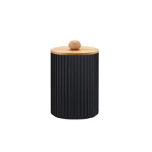 Цей набір — не просто функціональні аксесуари, а справжні прикраси вашої ванної кімнати. Унікальна рифлена текстура створює гру світла та тіні, додаючи глибини та характеру. Натуральні бамбукові кришки підкреслюють екологічність та природну красу. Різна висота контейнерів дозволяє створити динамічну композицію та ефективно організувати простір. Матове покриття виглядає дорого та не залишає відбитків пальців.